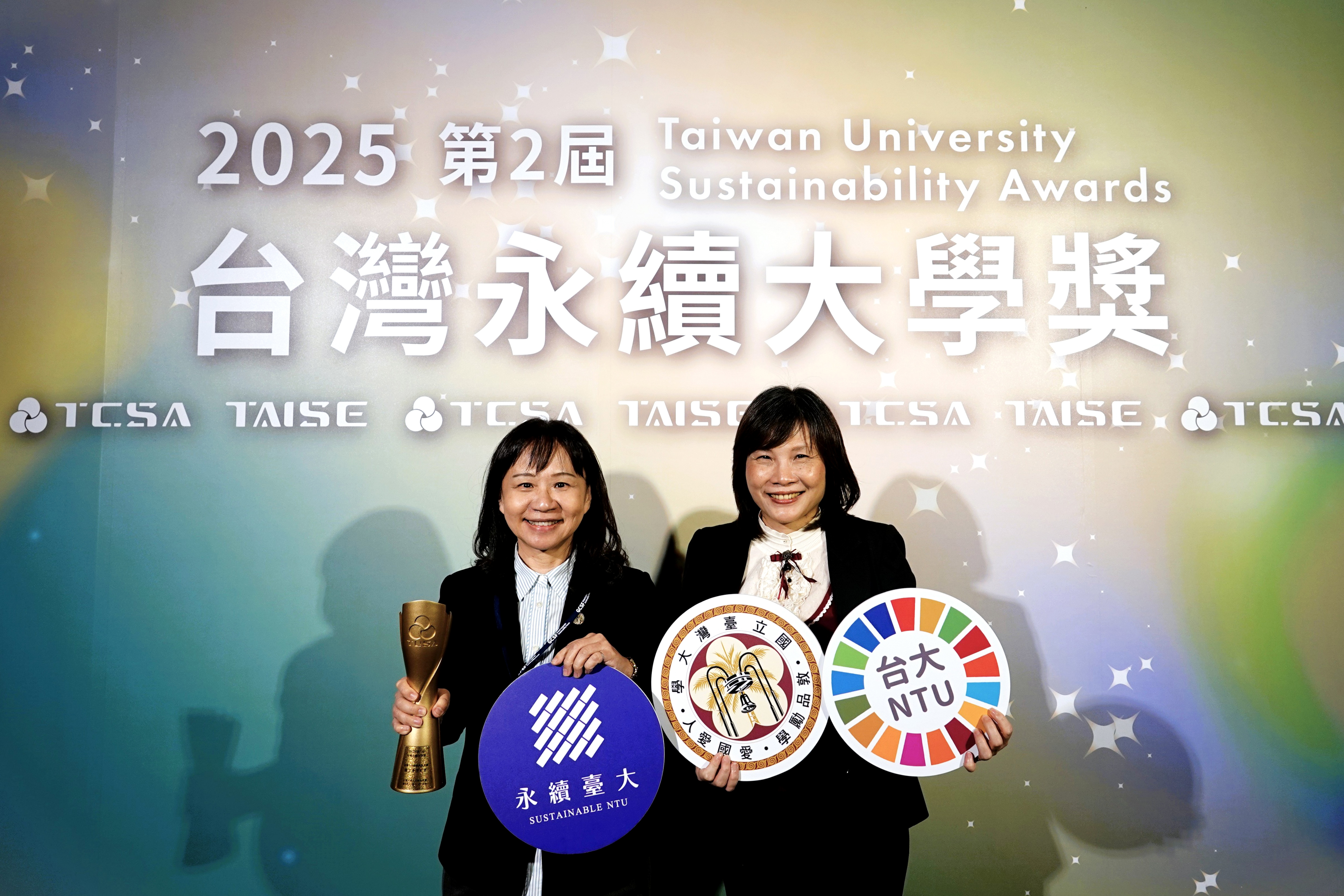 由台灣永續能源研究基金會(TAISE)主辦的「2025 台灣永續大學獎」於2025年11月26日舉行頒獎典禮,臺灣大學榮獲「台灣永續十大典範大學」殊榮,並名列榜首,由臺大副校長曾宛如代表出席並受獎。 此獎項肯定臺大在大學治理、環境永續與社會共融等面向的卓越表現,展現全校師生將永續理念落實於日常行動的努力與成果。能獲得...