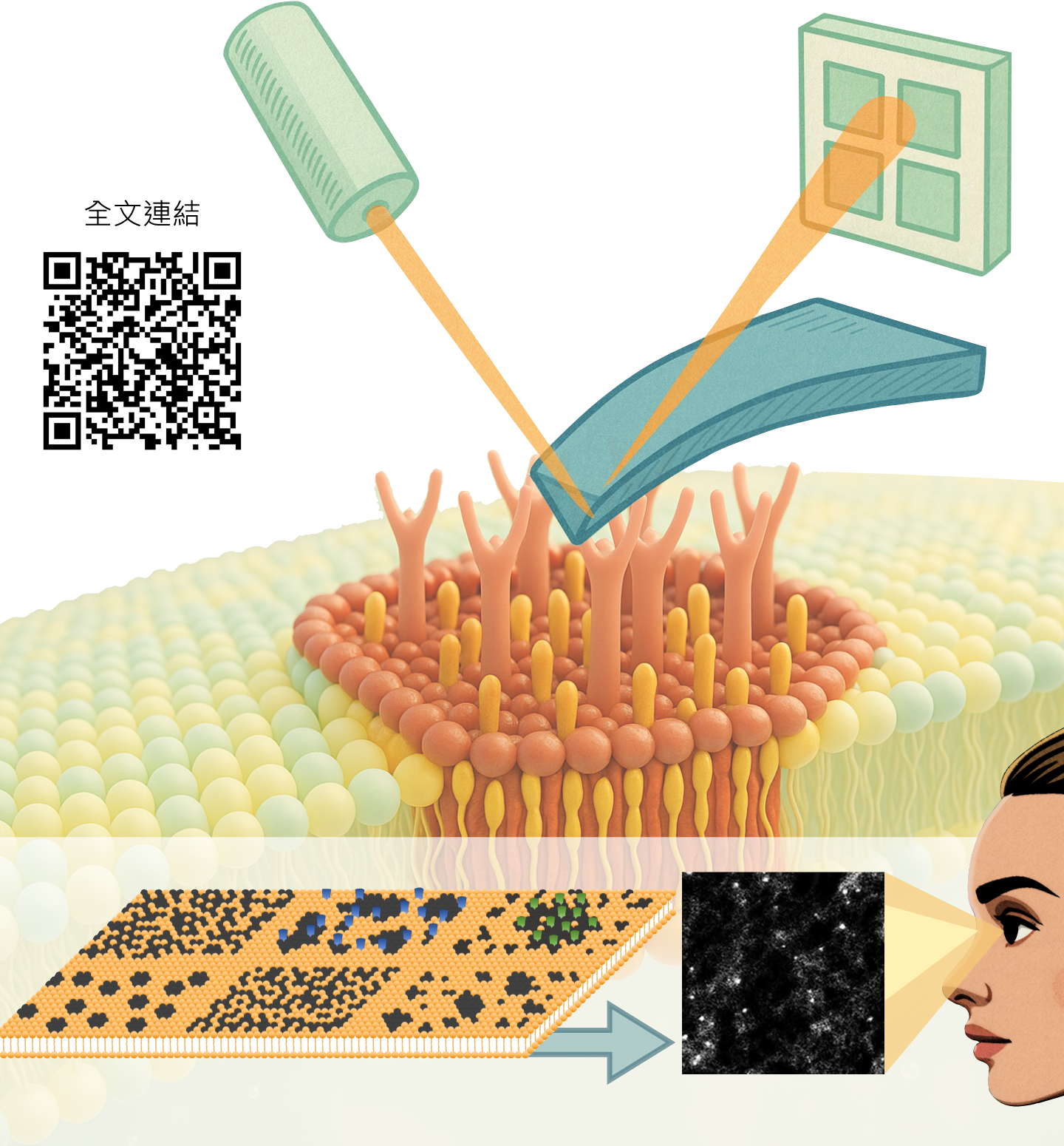 臺灣大學化學系教授陳俊顯、生化科技系教授何佳安和暨南國際大學應用化學系多位教授,率領2校研究生組成的團隊運用原子力顯微鏡與哈達瑪乘積 (Hadamard product) 影像分析技術,首次在活細胞中觀察到脂筏 (membrane rafts) 的奈米動態,讓細胞膜的隱形結構首度「看得見」。 脂筏 (membrane rafts) 是一種在細胞膜上的奈...