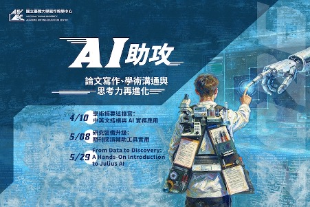 本期範文賞析摘錄自「寫作雙核心:硬底子知識加AI外掛」 系列演講的〈探索數據 × AI 故事力:AI 助攻英文研究數據評析〉,由寫作教學中心 柯凱彣老師主講,探討如何運用 Julius AI 等工具進行數據分析、圖表製作與數據評述,並透過工作坊讓學生 實際體驗 AI 輔助研究的流程。讀者園地 (PENNY FOR YOUR THOUGHTS) 除了公告這學期的AI助攻:論文 寫作、學術溝通與思考力再進化」系列演講,也持續推廣一對一個人化指導的寫作諮詢服務,包括寫作急診室及 「Writing with AI」。快來預約寫作路上的神隊友吧。